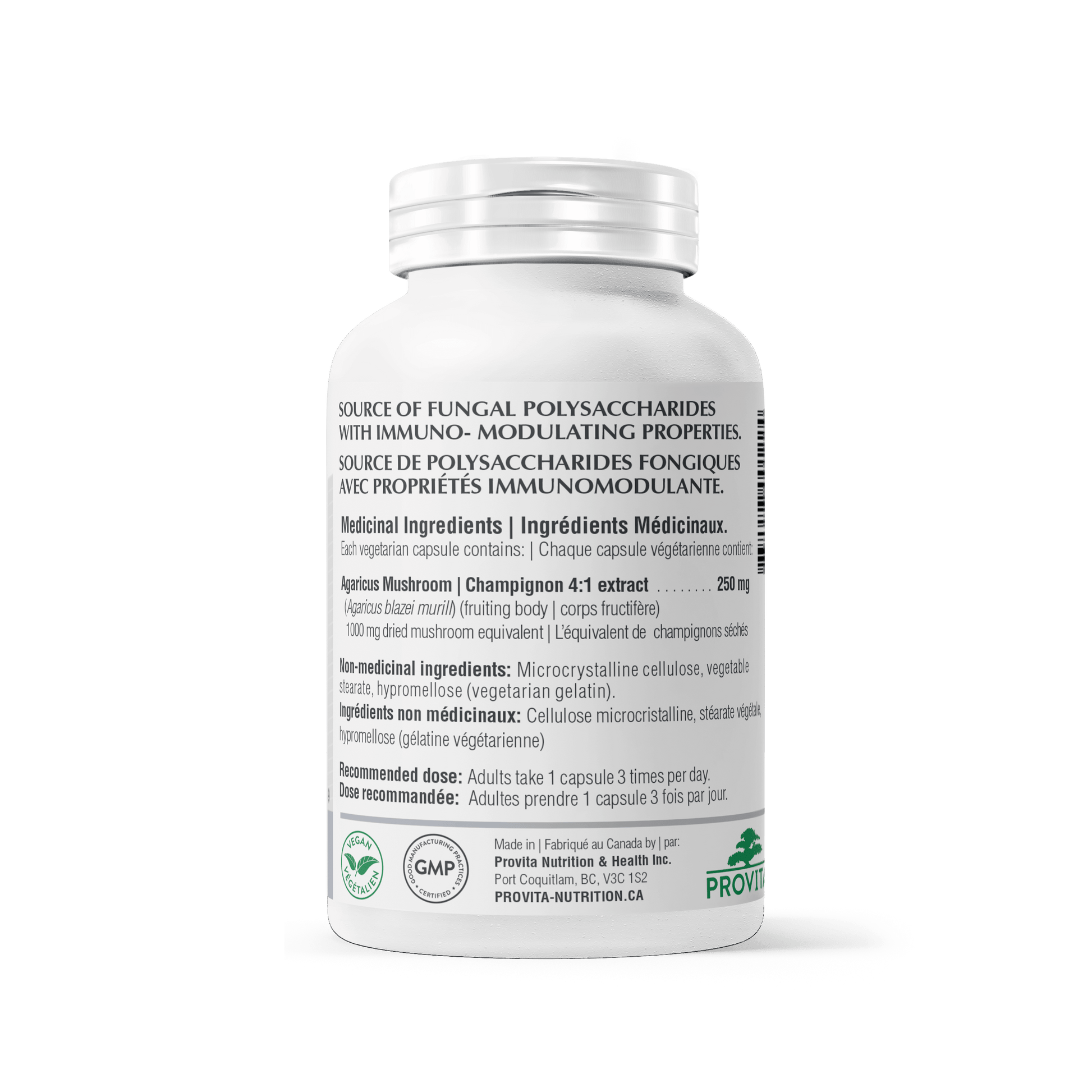 | Non Medicinal IngredientsMicrocrystalline cellulose, vegetable magnesium stearate. Capsule shell: hypromellose (vegan gelatin). | Does not containGMO ingredients, dairy, egg, gluten, soy, wheat, corn, yeast, nuts, artificial sweeteners, preservatives, colors or flavors. |